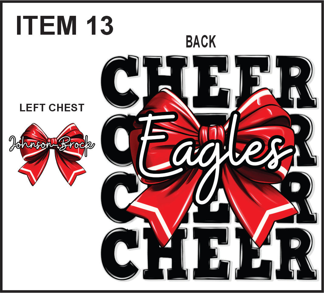 DESIGN: JB BOW (LEFT CHEST) - CHEER EAGLES BOW (FULL BACK)